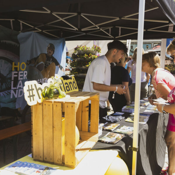 - Der Falt-Flyer, der über das Programm des Jubiläumstages informierte, kann nachhaltig weitergenutzt werden: Einfach den Programmteil an der perforierten Linie abreißen. Dann bleibt ein dauerhaft gültiger Info-Flyer, der einen Überblick über den Saaleradweg im Hofer Land gibt und auf Highlights entlang der Strecke hinweist.