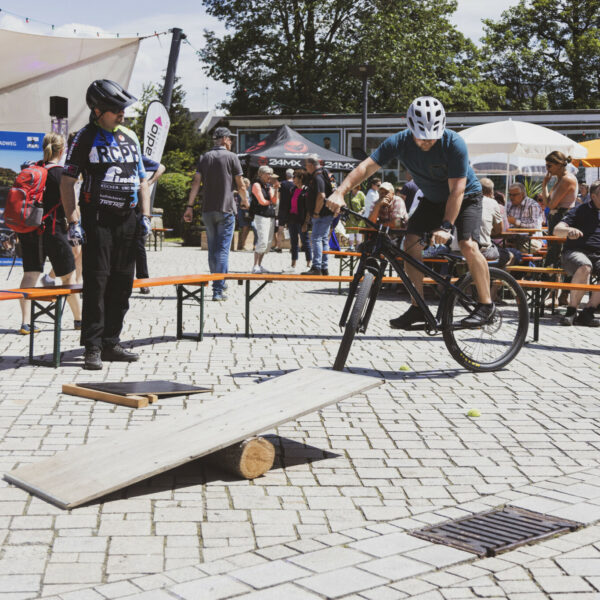 Der nun eingeweihte Teilabschnitt, den die Stadt Schwarzenbach a.d.S seit September 2023 ausgebaut hatte, ist rund 2,5 Kilometer lang und sorgt für einen Lückenschluss. Die neue Fußgänger- und Radfahrer-Brücke ersetzt dabei die bisherige Fußgängerbrücke und kann mit einer Durchfahrtsbreite von 2,50 Metern künftig für den Fahrradverkehr in zwei Richtungen genutzt werden. Beim Jubiläumsfest im Rathaushof lockten neben dem Bühnenprogramm und einem großen kulinarischen Angebot auch viele Vereine und Institutionen mit Info- und Mitmach-Ständen rund ums Thema Radfahren die zahlreich erschienenen Gäste.