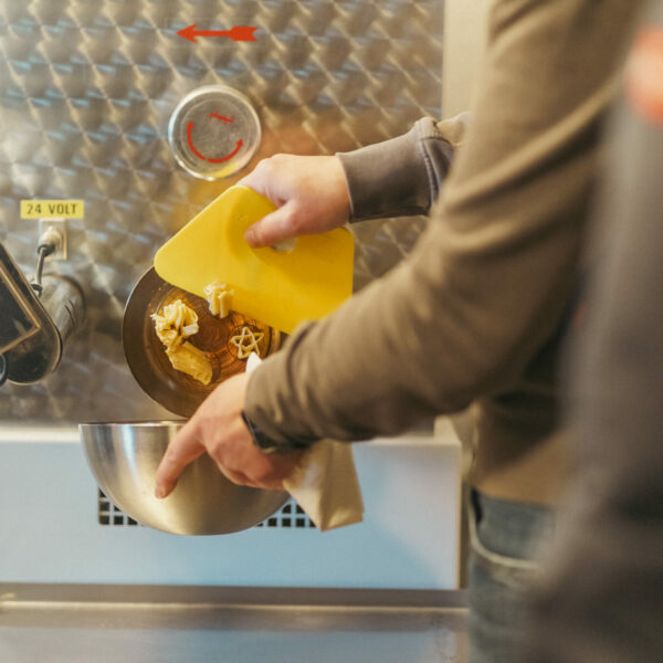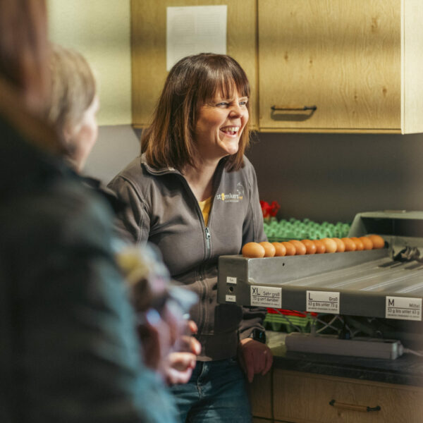 Einblick in artgerechte Tierhaltung, Getreideanbau und Verarbeitung. Vom Feld zur Mühle bis zum abgepackten Mehl – inklusive Blick in den Hofladen und live hergestellter Weihnachtsnudeln. Mit Mehl und Nudeln im Gepäck ging es zur Weiterverarbeitung.