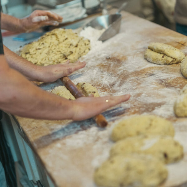 Unter Anleitung von Dieter Popp backten die Gäste ihren eigenen Stollen. Dazu gab es Hintergrundwissen zu Rezepturen, regionaler Backkultur und den Besonderheiten des fränkischen Stollens. Der selbstgebackene Christstollen bildete den genussvollen Abschluss der Reise.