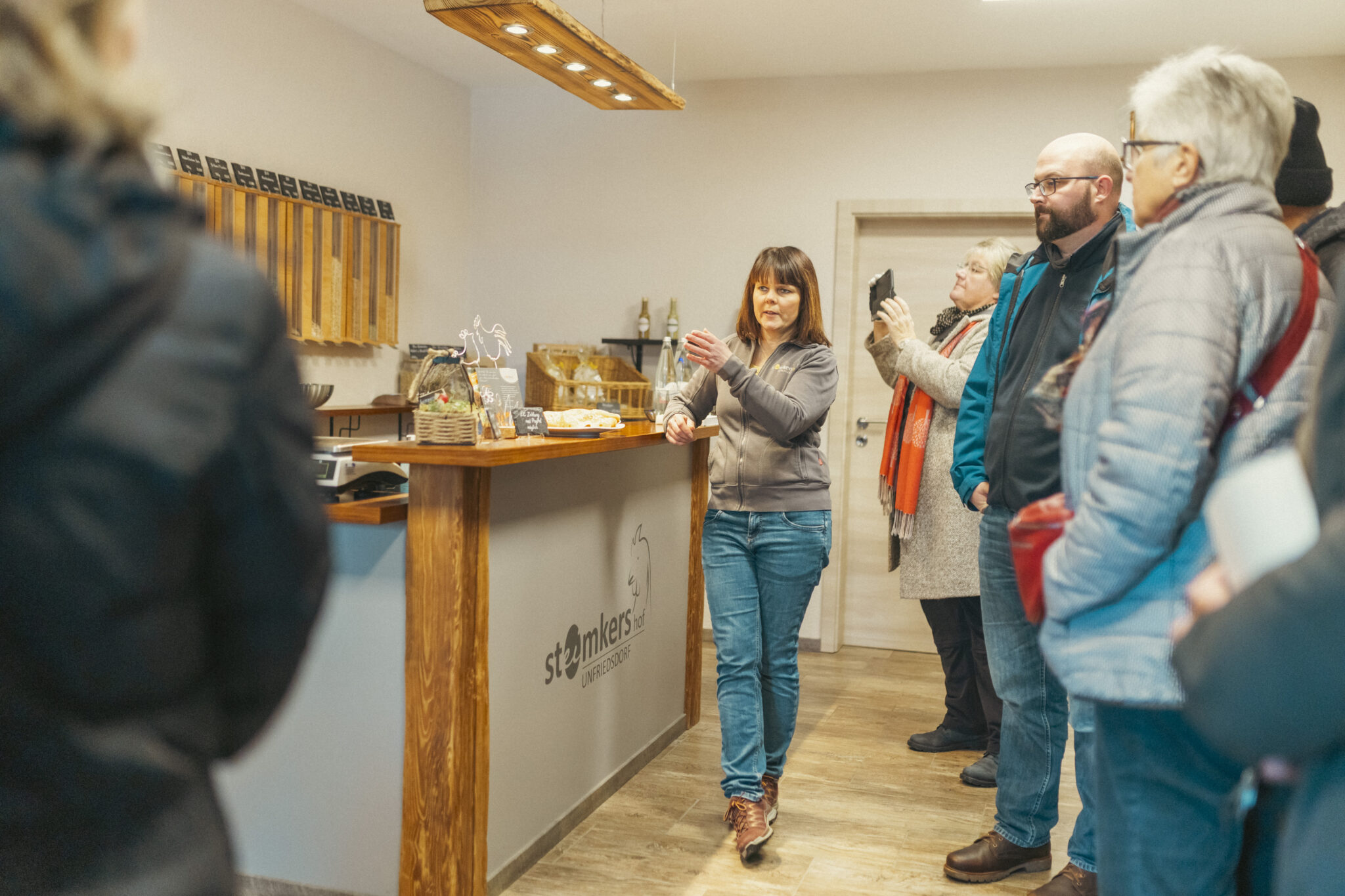 Einblick in artgerechte Tierhaltung, Getreideanbau und Verarbeitung. Vom Feld zur Mühle bis zum abgepackten Mehl – inklusive Blick in den Hofladen und live hergestellter Weihnachtsnudeln. Mit Mehl und Nudeln im Gepäck ging es zur Weiterverarbeitung.