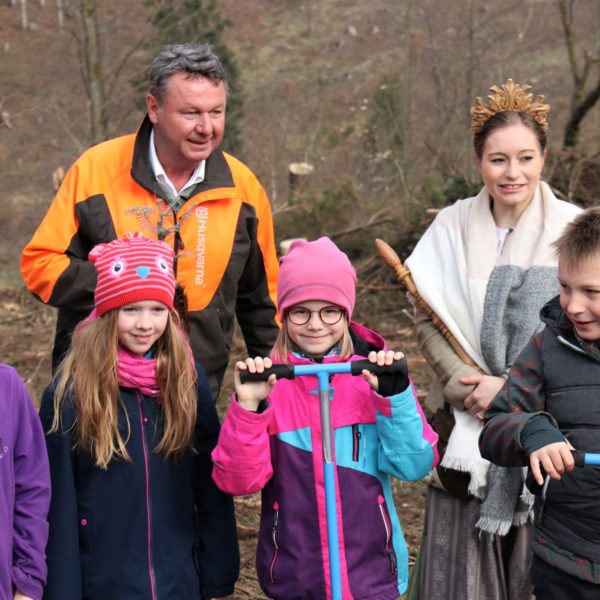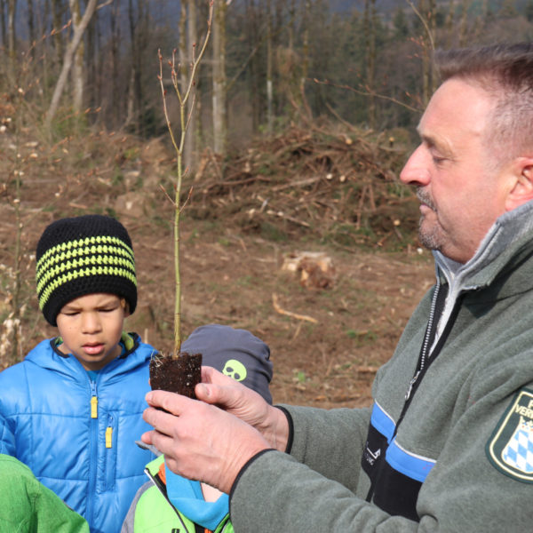 Gepflanzt wurden die Bäume auf einer Waldfläche in direkter Nähe zur Grundschule. Waldbesitzer Klaus Gemeinhardt hatte die Bäume auf seine Kosten zur Verfügung gestellt. Begleitet wurde die Pflanzaktion von Vertretern aus Politik, dem Forst, Waldbesitzern und auch der Bayerischen Waldkönigin.
