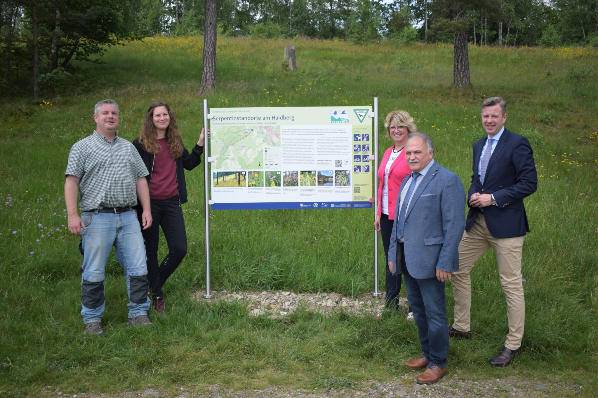Optisch ansprechend, informativ und im bayernweit abgestimmten Schutzgebiets-Design sollte sie sein, die neue Info-Tafel am Haidberg bei Zell. Mario Wohlfahrt, Kreisfachberater und zuständig für landkreiseigene Waldflächen im Gebiet, hatte die Erneuerung des Schildes angestoßen, nachdem das alte am Parkplatz in die Jahre gekommen war. Im Rahmen seines derzeit laufenden Projekts zu den Serpentinit-Standorten in Nordost-Oberfranken übernahm der Landschaftspflegeverband Landkreis und Stadt Hof (LPV) diese Aufgabe.