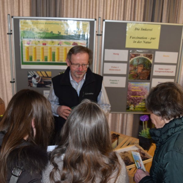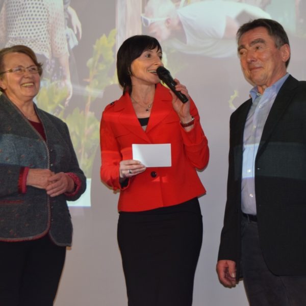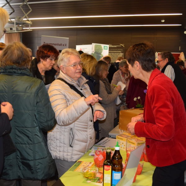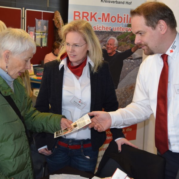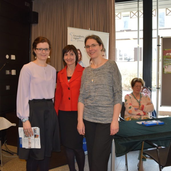 Das Bild zeigt Edith Zapf (links) im Gespräch mit Ute Hopperdietzel (Mitte) von der Gesundheitsregion plus und Reinhard Rahm (rechts).