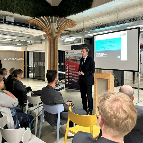 Im Mittelpunkt der Infoveranstaltung standen die Themen Neuordnung der GRW-Förderung mit Umweltschutzmaßnahmen etc., die Finanzierungsangebote der LFA Förderbank sowie das erweiterte Beratungsangebot der drei Gebietskörperschaften in Zusammenarbeit mit der IHK. Best Practice Beispiele gaben zudem Einblick in die praktische Umsetzung.