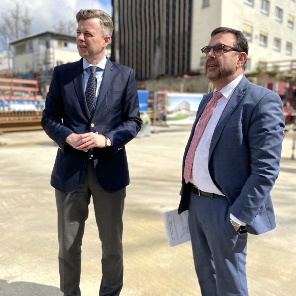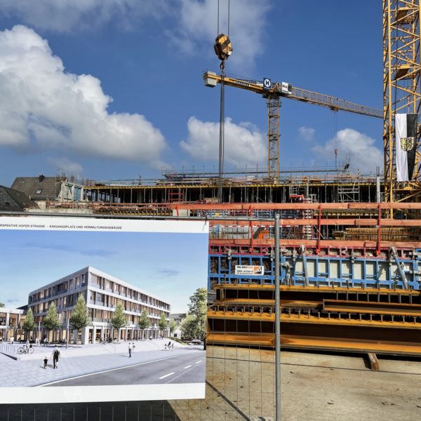 Im Beisein des Staatsministers für Gesundheit und Pflege, Klaus Holetschek, sowie zahlreichen Ehrengästen wurde heute in Münchberg der Grundstein zur Erweiterung der Klinik gelegt. Damit geht der Landkreis Hof einen weiteren wichtigen Schritt in seinem Vorhaben, die Kliniken HochFranken sukzessive zu erweitern und damit die medizinische Versorgung in der Region sowie die Leistungsfähigkeit der beiden Häuser in Münchberg und Naila zu verbessern. So konnte im Herbst 2019 das neue Bettenhaus der Klinik Naila in Betrieb genommen werden. Seit September vergangenen Jahres laufen nun die Bauarbeiten für den Rohbau des ersten und zweiten Bauabschnittes der Klinikerweiterung in Münchberg.