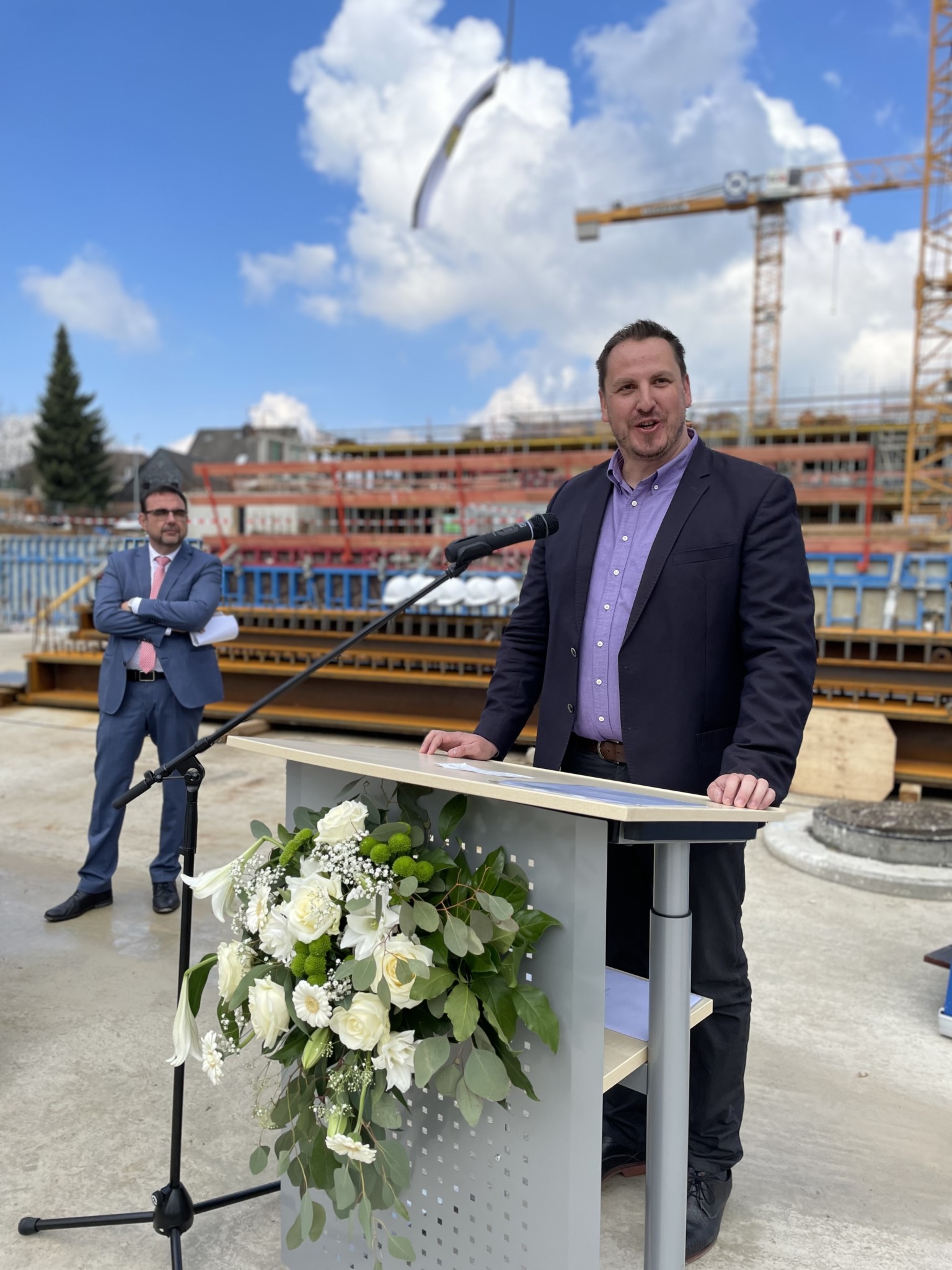 „Die heutige Grundsteinlegung ist ein Markstein für die medizinische Versorgung in unserer Region, vor allem aber auch ein wichtiger Standortfaktor. Wir in Stadt und Landkreis Hof sind sehr stolz auf unsere kommunalen Kliniken - auf unsere Kliniken in Münchberg und Naila - weil wir wissen, dass die Menschen hier gut versorgt werden. Wir sind sehr stolz auf die medizinische Leistung, die hier vollbracht wird und darauf, dass wir unsere Kliniken immer auch weiterentwickeln. Nicht zuletzt dadurch fühlen sich die Menschen in der Region gut aufgehoben. Dies können wir nur, weil uns hervorragende Ärztinnen und Ärzte sowie ein hochprofessionelles Pflegepersonal zur Seite steht. Menschen, die immerwährend für uns da sind, in Notsituationen parat stehen, auch wenn die Rahmenbedingungen nicht immer leicht sind. Dafür sowie für die Begleitung des Projektes und die finanzielle Unterstützung des Freistaates Bayern möchte ich mich herzlich bedanken. Es zeigt, dass dem Freistaat Bayern die Versorgung unserer Bürgerinnen und Bürger am Herzen liegt“ so Dr. Oliver Bär, Landrat und Verwaltungsratsvorsitzender der Kliniken Hochfranken.