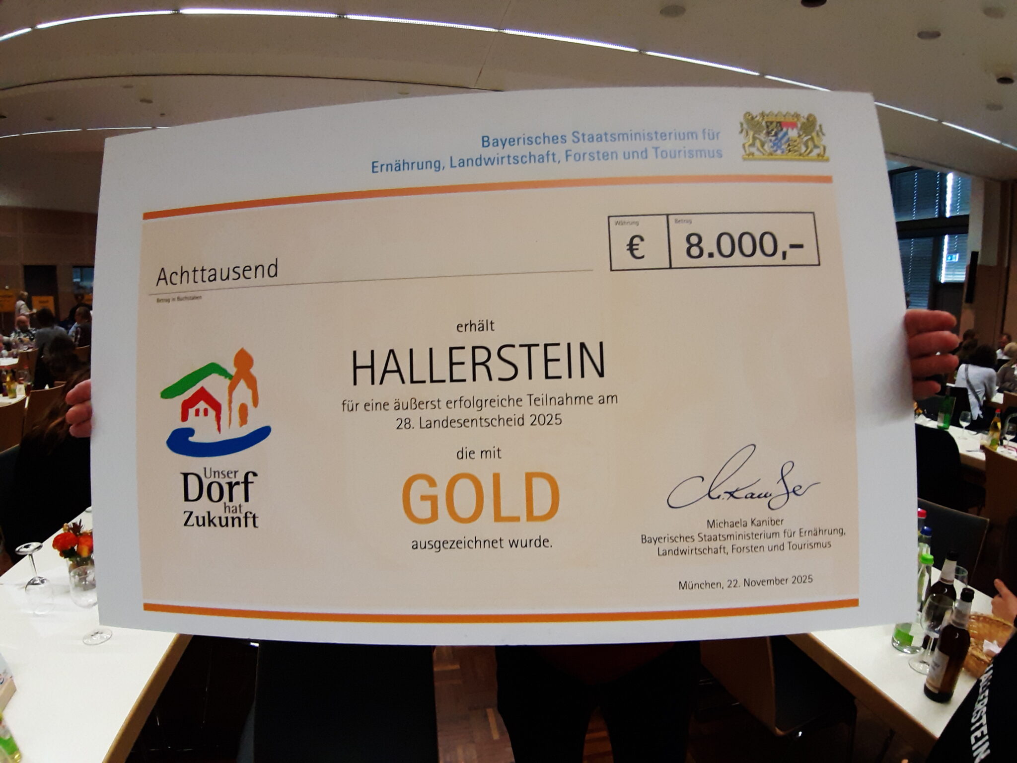 Neben Hallerstein gewann auch Oberkrumbach (Gemeinde Kirchensittenbach, Lkr. Nürnberger Land) eine Goldmedaille. Die Entscheidung der Fachjury fiel bereits Ende Juli und wurde damals auch schon verkündet. Die beiden Golddörfer erhielten neben der Auszeichnung ein Preisgeld in Höhe von 8.000 Euro. Sie werden Bayern im kommenden Jahr beim Bundesentscheid vertreten, der im Juni 2026 stattfindet.