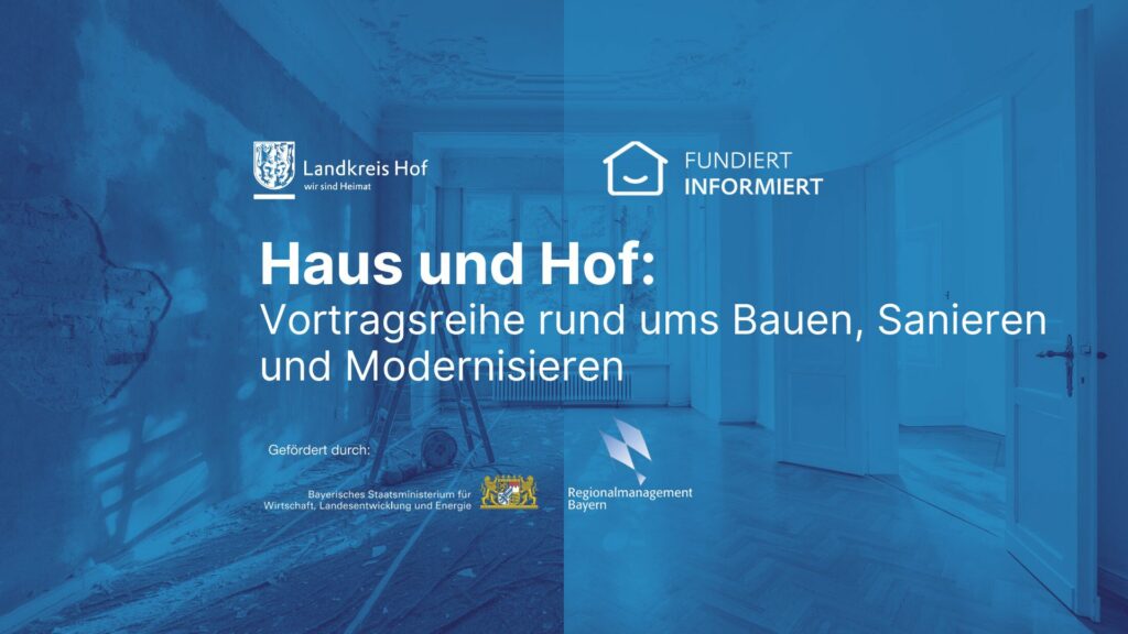 Im November und Dezember informiert der Landkreis Hof im Rahmen der Vortragreihe „Haus und Hof“ wieder zu den Themen Bauen, Sanieren und Modernisieren sowie zu entsprechenden Zuschüssen und Fördermöglichkeiten.