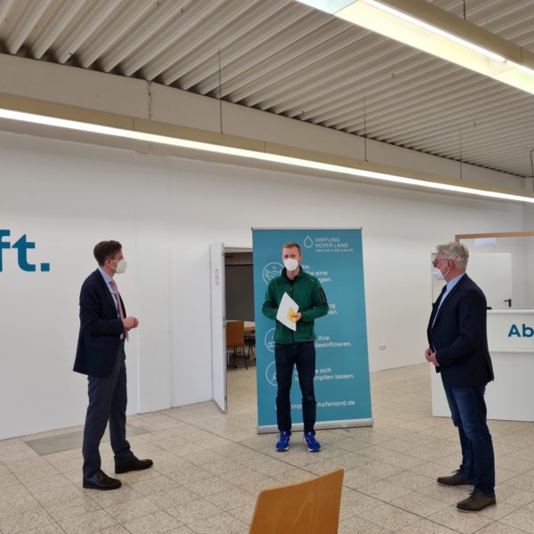Seit heute Vormittag können sich Bürgerinnen und Bürger im Hofer Land neben dem Zentralen Impfzentrum in Hof und 20 Hausarztpraxen nun auch in einem weiteren Impfzentrum in Helmbrechts impfen lassen. In nur wenigen Wochen wurde die ehemalige Stofffabrik in der Gustav-Weiß-Straße von den Mitarbeitern des Helmbrechtser Bauhofes in ein modernes Impfzentrum umfunktioniert. Unter Vollauslastung können hier bis zu 350 Impfungen pro Tag durchgeführt werden.