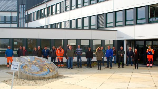 Foto: Die Teilnehmerinnen und Teilnehmer der Bauhofschulung zu insektenfreundlicher Grünflächenpflege mit Roland Kießling (Vertreter der Landwirtschaft und LPV-Vorstand, 2.v.r.), dem Kreisfachberater Mario Wohlfahrt und Isabel Kaske vom LPV (4. und 8.v.r.)