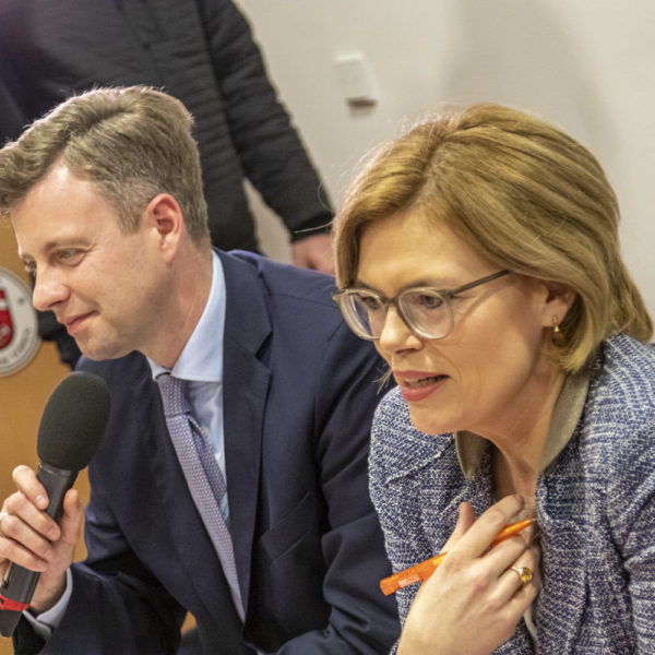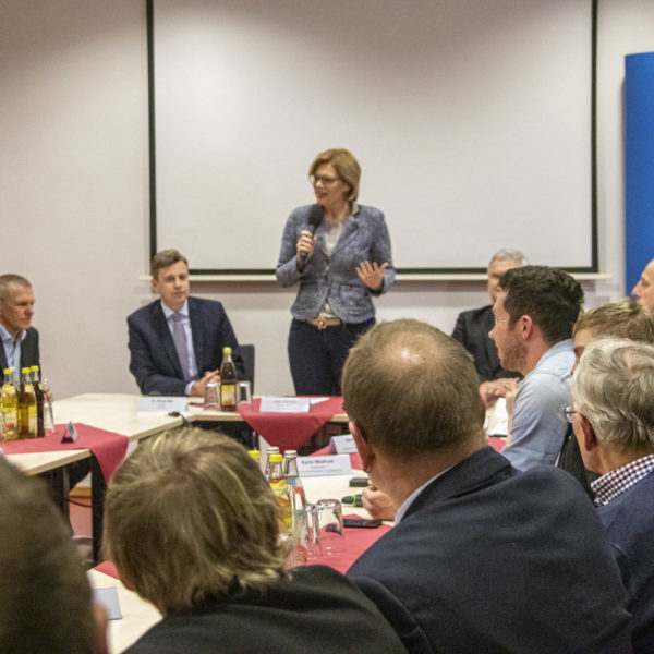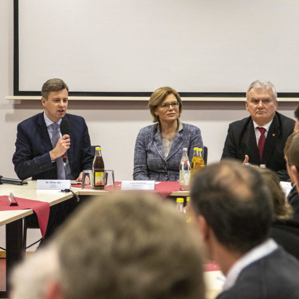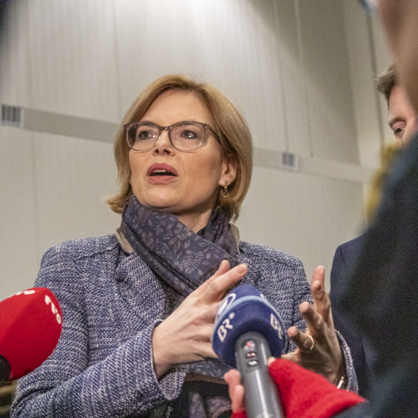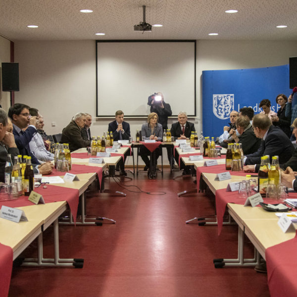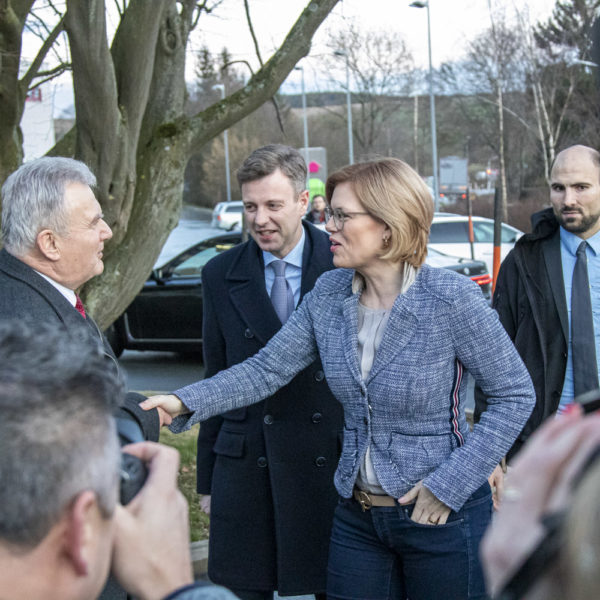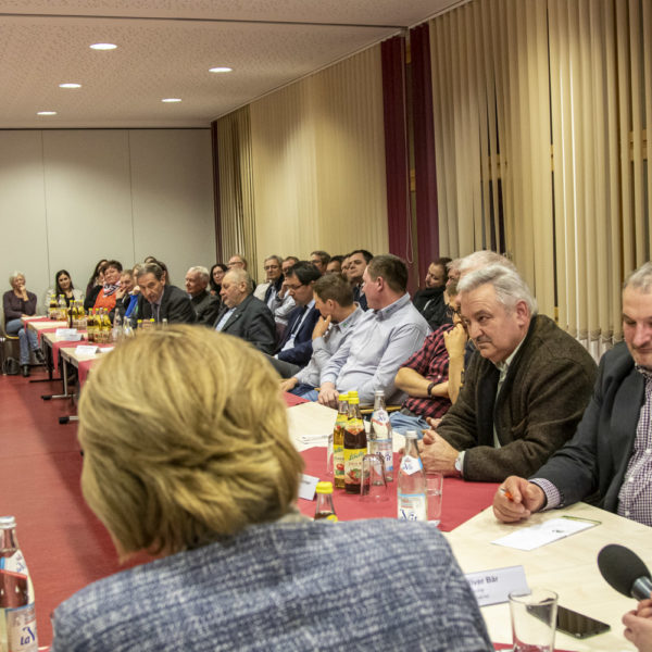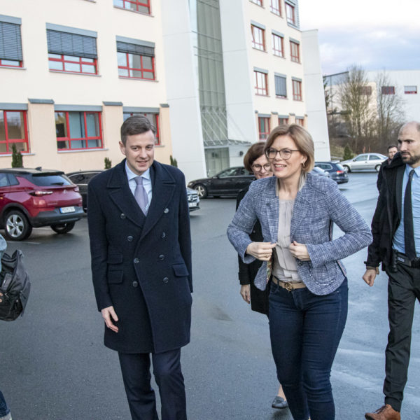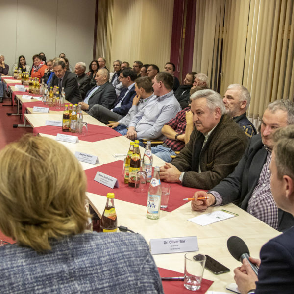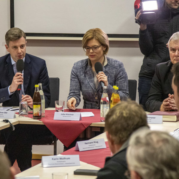 Bundeslandwirtschaftsministerin Julia Klöckner hat das Hofer Land besucht. Sei folgte damit einer Einladung von Landrat Dr. Oliver Bär, um sich mit Landwirten und landwirtschaftlichen Verbänden  der Region über die aktuellen Herausforderungen, wie die Verschärfung der Düngeverordnung, faire Verhandlungen mit dem Einzelhandel oder die Pflanzenschutzmittelreduktion auszutauschen. Im Vorfeld des Fachgespräches im Töpener Rathaus besuchte die Ministerin die Firma dennree, um sich über deren Entstehungs- und Erfolgsgeschichte zu informieren. Abschließend richtete Klöckner noch einige Worte an rund 500 Landwirte, die aus dem Hofer Land, benachbarten Landkreisen sowie aus Thüringen nach Töpen gekommen waren.