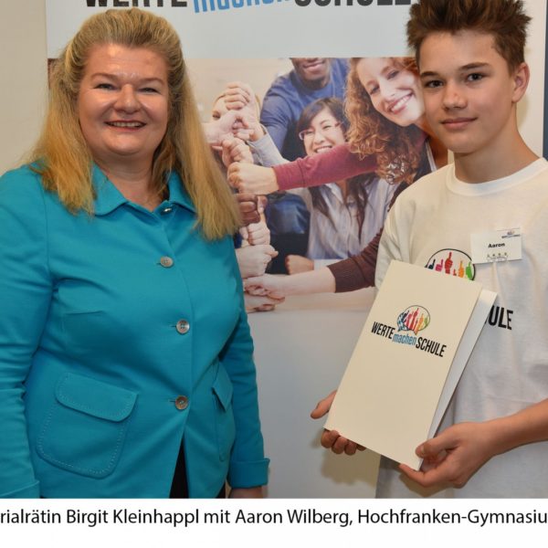 Sechs Schülerinnen und Schüler aus Hof und dem Landkreis Hof gehören jetzt zu den Wertebotschaftern in Bayern. In Steinbach am Wald im Landkreis Kronach sind sie gemeinsam mit 18 weiteren Jugendlichen aus Oberfranken innerhalb einer Woche im Rahmen der Initiative „Werte machen Schule“ des Bayerischen Kultusministeriums zu Wertebotschaftern ausgebildet worden. Anna Stolz, Staatssekretärin für Unterricht und Kultus, hat die Schülerinnen und Schüler ausgezeichnet, darunter sechs aus der Mittelschule Helmbrechts, der Staatlichen Realschule Helmbrechts, dem Schiller-Gymnasium Hof, dem Gymnasium Münchberg, dem Hochfranken-Gymnasium Naila und der Mittelschule Oberkotzau. Kultusstaatssekretärin Anna Stolz: „Die Wertebildung der jungen Menschen im Freistaat ist mir ein Herzensanliegen. Gemeinsam müssen wir uns für Werte stark machen, sie leben und vorleben. Die jugendlichen Wertebotschafterinnen und Wertebotschafter bringen sich aktiv bei der Wertebildung an unseren Schulen ein.“ Ziel sei, dass sich junge Menschen aktiv für ein respektvolles und verantwortungsvolles Miteinander in der Gesellschaft engagieren.