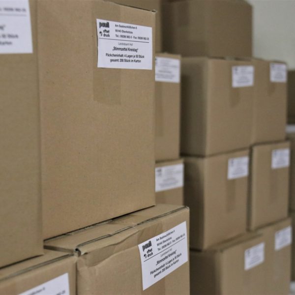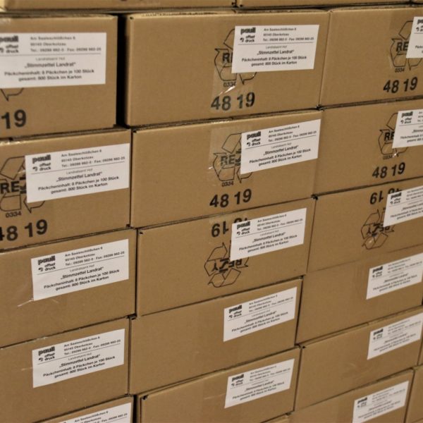 81.000 Stimmzettel haben jetzt das Landratsamt Hof verlassen. D.h. ab sofort können von den Gemeinden aus auch die Briefwahlunterlagen versendet werden.