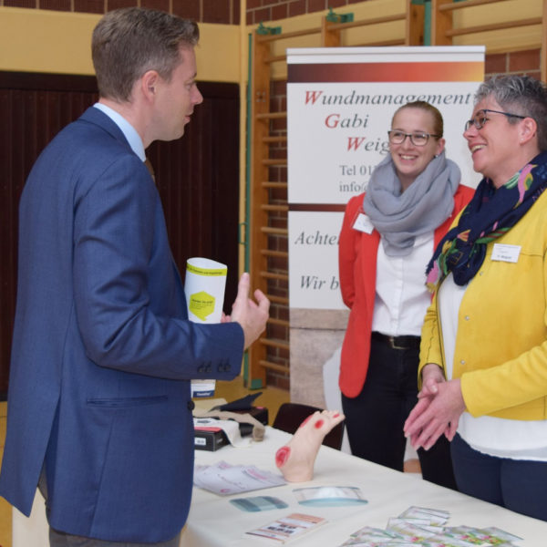 Auch Landrat Dr. Oliver Bär und der Nailaer Bürgermeister Frank Stumpf ließen sich an den Ständen unter anderem zu neuen Methoden in der Medizin oder Programmen zur Reha informieren. Bär unterstrich in seinem Grußwort die neuen Möglichkeiten der medizinischen Versorgung, die im Landkreis Hof mit der Investition von rund 110 Millionen Euro in die Kliniken Hochfranken in Naila und Münchberg aktuell geschaffen werden.
