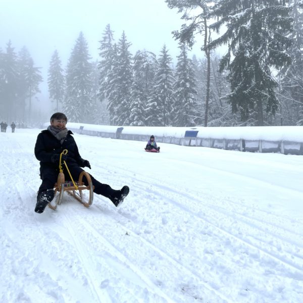 Wunderschön verschneit präsentiert sich derzeit das Fichtelgebirge seinen zahlreichen Besuchern. Passend dazu hat am Großen Kornberg das neue Kornberghaus heute den Betrieb aufgenommen. Auch der neue Zauberteppich kann von den Rodlern erstmals genutzt werden.