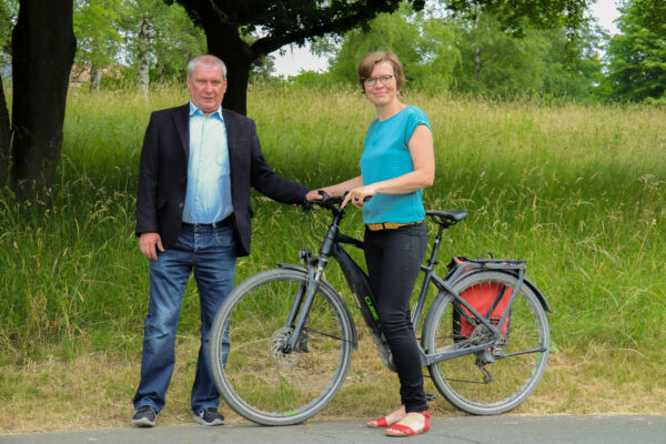 Das Foto zeigt die beiden Klimaschutzmanager des Landkreises Hof: Bertram Dannhäuser und Anja Naumann.