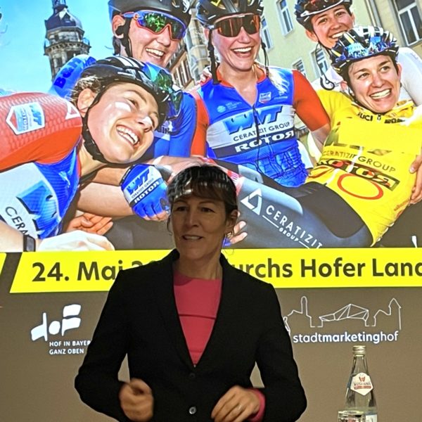 Die Ladies Tour hat es spannend gemacht und das Geheimnis um den Austragungsort der ersten Etappe 2022 lang unter Verschluss gehalten. Die renommierte Frauenrundfahrt wird erst zum dritten Mal außerhalb des Freistaates Thüringen gastieren – und zwar erstmals in Bayern um genau zu sein im fränkischen Hof. Die Rundfahrt startet also von Thüringen aus gesehen flussaufwärts an der Saale in einer Region mit langer und großer Radsporttradition, die nicht nur mit Bayernrundfahrt und Rund ums Hofer Rathaus große und traditionsreiche Rennen zu bieten hatte, sondern aus der mit der Equipe Nürnberger auch eine der großen deutschen Profimannschaften des Frauenradsports kam. „Hof ist eine Sportstadt mit Freizeitwert. Die Teilnehmerinnen erwartet eine phänomenale Landschaft und eine anspruchsvolle Route, die es wert ist, mit dem Fahrrad erkundet zu werden“, sagt Oberbürgermeisterin Eva Döhla.