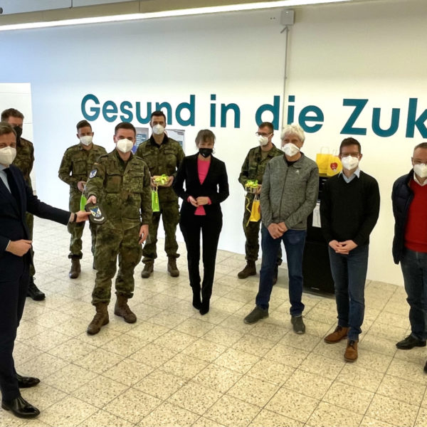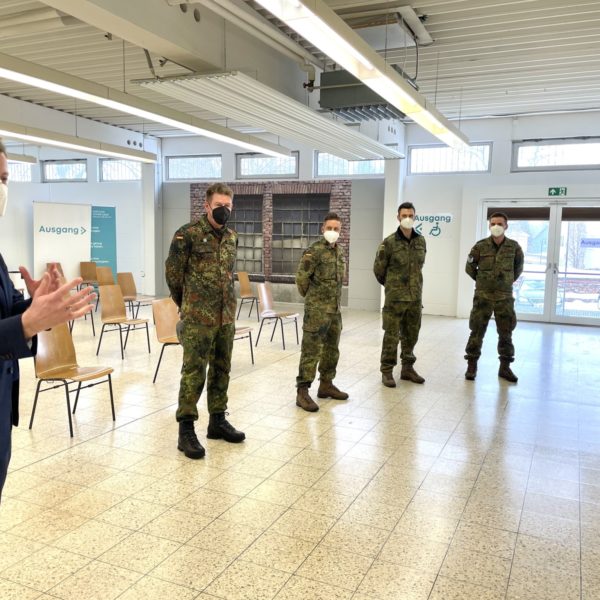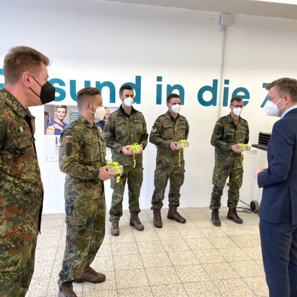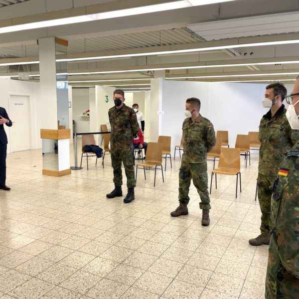 „Die Bundeswehr ist von Beginn an ein zuverlässiger und wichtiger Partner in der Pandemiebekämpfung. Sei es im Gesundheitsamt, in den Kliniken, unseren Alten- und Pflegeheimen, den Teststellen oder auch in den Impfzentren. Wann immer es notwendig ist, waren und sind Sie da. Das macht unser Land sicherer und dafür sind wir Ihnen sehr dankbar.“