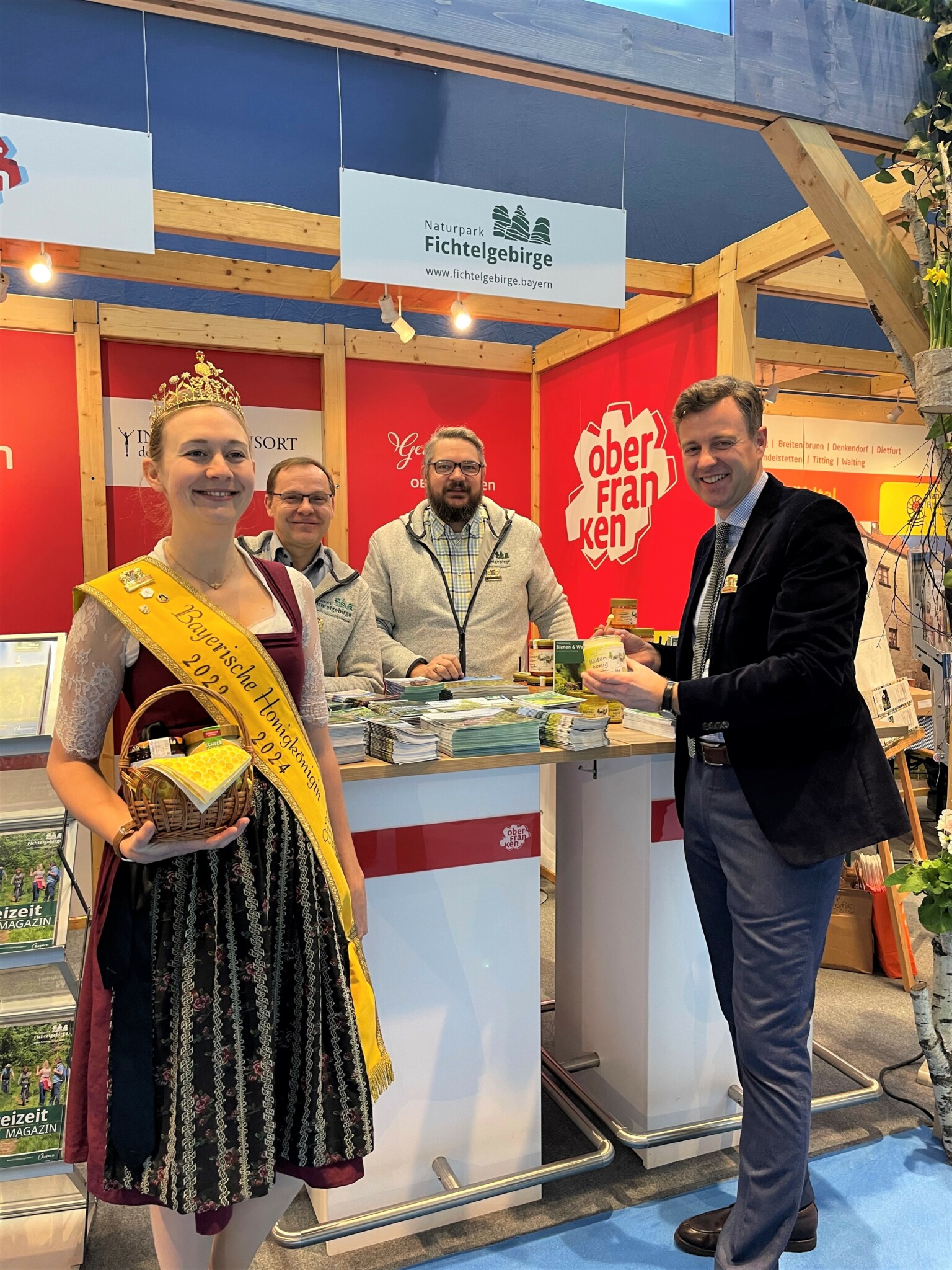 Bezirkstagspräsident Henry Schramm freut sich über das große Interesse, auf das Oberfranken bereits in den ersten Stunden stößt: „Es sind auch in diesem Jahr wieder viele Aussteller da, mit typisch oberfränkischen Produkten aus der Genussregion. Ich freue mich auch, dass der Hofer Landrat heute Morgen mit dabei ist, um die Aussteller zu begrüßen. Die Ministerin Michaela Kaniber ist da, es ist richtig was geboten in der Halle. Es werden bestimmt zehn tolle Tage mit einer super Werbung für unser tolles Oberfranken.“