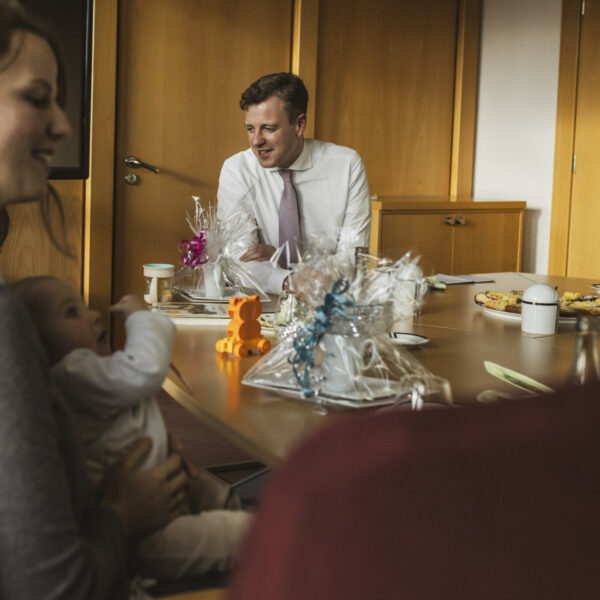 Jährlich findet ein lockeres Zusammentreffen für die Angestellten des Landratsamtes statt, die im Laufe des Jahres Eltern geworden sind. Bei diesem Treffen, das bei Kaffee und Kuchen im Landratsamt stattfindet, haben die frischgebackenen Eltern die Möglichkeit, auch während ihrer eventuell noch laufenden Elternzeit in Verbindung zu bleiben und sich mit anderen neuen Eltern auszutauschen.