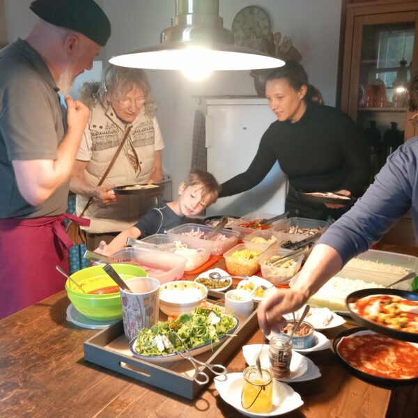 Gespannt schaute die Gruppe zu, als es nach draußen zur Weide ging und die Lamas gehalftert wurden. Gemeinsam unternahmen sie einen Spaziergang zur Wiese, die sanften Tiere wurden gestreichelt und hautnah in freier Natur erlebt. In einer fröhlichen Runde am Ende konnten alle ihre eigenen Pizzas belegen, Zutaten auswählen und beim gemeinsamen Essen viel erzählen.