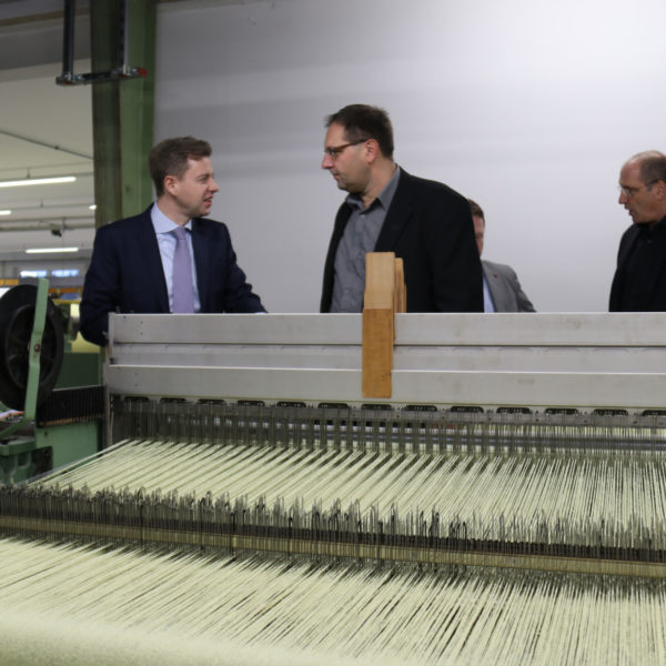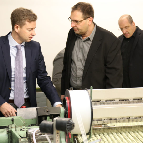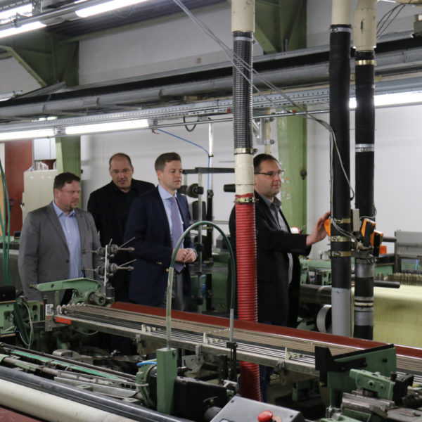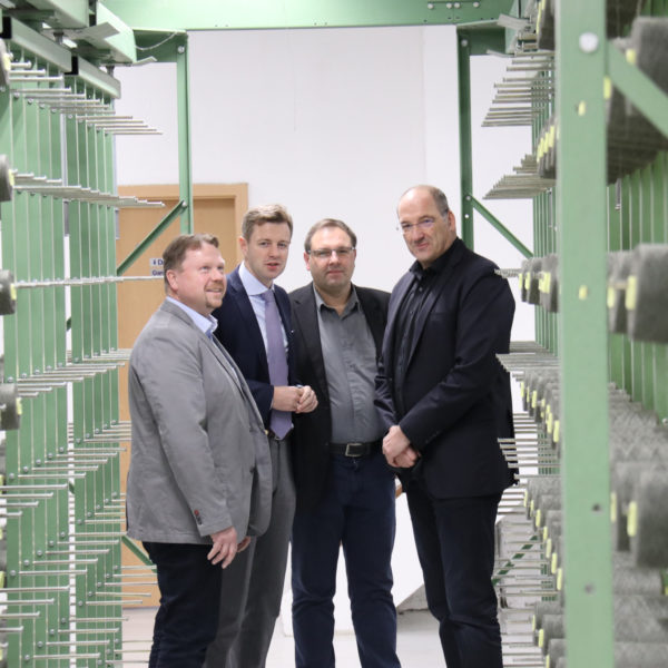 Besichtigung bei der TTI Technische Textilien International GmbH (von links): Landrat Dr. Oliver Bär, Reiner Feulner, Bürgermeister von Schwarzenbach am Wald, und die TTI-Geschäftsführer Sven Birkner und Stefan Schulz.