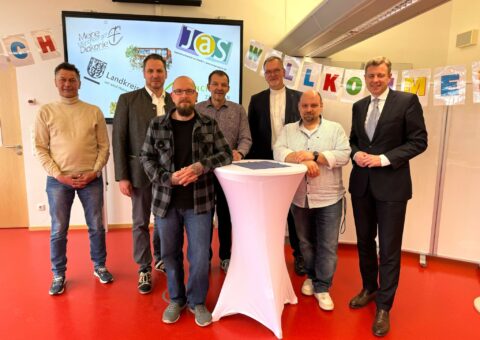 Bezirkstagspräsident Henry Schramm und der ehemalige bayerische Finanzminister Georg Freiherr von Waldenfels haben die Lebenshilfe Hof besu…
