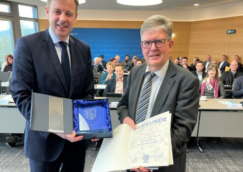 Im Rahmen der jüngsten Kreistagssitzung hat Landrat Dr. Oliver Bär Helmut Oelschlegel für seine 20-jährige Zugehörigkeit im Kreistag ge…