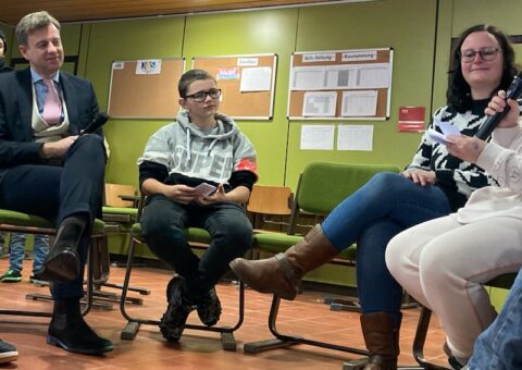 Landrat Dr. Oliver Bär hat einen vorweihnachtlichen Tag in der Bonhoefferschule in Hof verbracht. Mit einem musikalischen Programm wurden a…