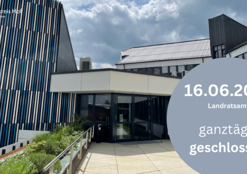 Wegen einer internen Veranstaltung ist das Landratsamt Hof am Freitag, den 16. Juni 2023, ganztägig geschlossen. Auch telefonisch sind die …