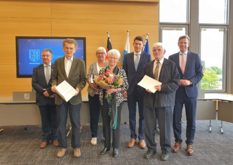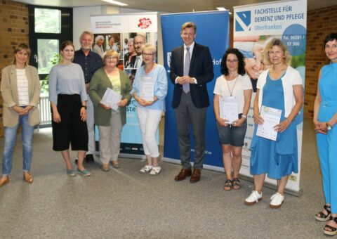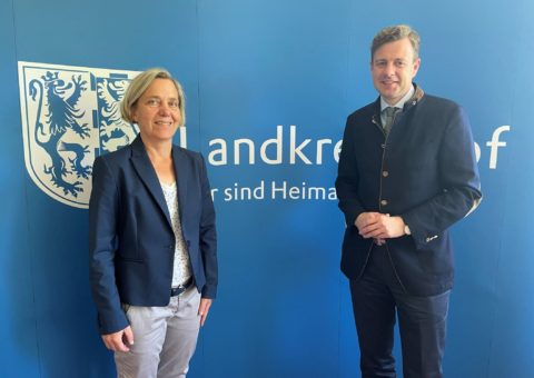 Die Projektleiterin des jüngst gegründeten Netzwerk Pflege, Alexandra Puchta, und die Seniorenkoordination des Landkreis Hof, Lisa-Maria M…