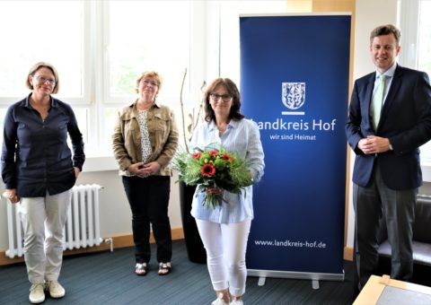 Nach 23 Jahren im Dienste des Landkreises Hof ist Brigitte Zapf jetzt von Landrat Dr. Oliver Bär in den Ruhestand verabschiedet. Frau Zapf …