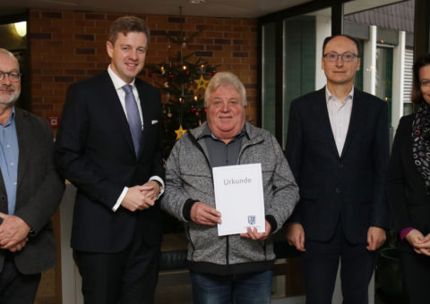Dieter Schott, Mitarbeiter im Fachbereich Veterinärwesen und Lebensmittelüberwachung im Landratsamt Hof, ist von Landrat Dr. Oliver Bär i…