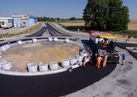 Gestern erhielt der Kreisverkehr an der Ortseinfahrt Rehau die erste Asphaltschicht. Der Landkreis baut gemeinsam mit der Stadt Rehau derzei…