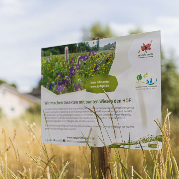 Der Landschaftspflegeverband Landkreis und Stadt Hof ist Träger des Einzelprojekts „Wir machen Insekten den HOF“. Gemeinsam mit Bauhöfen und Landwirten hat der LPV auf 14 Flächen Maßnahmen durchgeführt. Der Vorsitzende des LPV, Landrat Dr. Oliver Bär, erläutert stolz: „Insgesamt hat der LPV ungefähr 8,5 ha Flächen entlang von Kreisstraßen, innerhalb der Stadt Hof und auf weiteren Flächen aufgewertet. Darüber hinaus hat der LPV den Kreisbauhof und den Stadtbauhof der Stadt Hof zu insektenfreundlicher Bewirtschaftung kommunaler Flächen beraten und mehrere Schulungen für insgesamt 96 Bauhofmitarbeitende durchgeführt. Rund 75 ha werden im Hofer Land nun insektenfreundlicher gepflegt.“