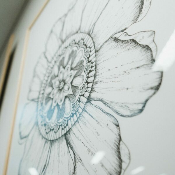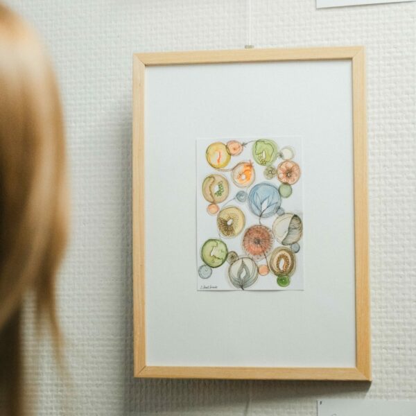 Wie Sybille Saalfrank berichtet, hatte sie sich in ihren Kinderjahren schon lieber Stifte, anstatt Puppen gewünscht. Und so war es schon früh klar, dass die Kunst stark im Mittelpunkt stehen sollte. In ihrer Arbeit verbindet sie unterschiedlichste Materialien und Techniken. Die Natur spielt dabei eine zentrale Rolle als Inspirationsquelle. Feine schwarzweiße Linienzeichnungen, malerische Aquarelle in Grüntönen sowie filigrane grafische Muster: manche Werke zeigen Pflanzen in exakter Form, andere sind freier interpretiert und greifen das Pflanzliche eher symbolisch auf.