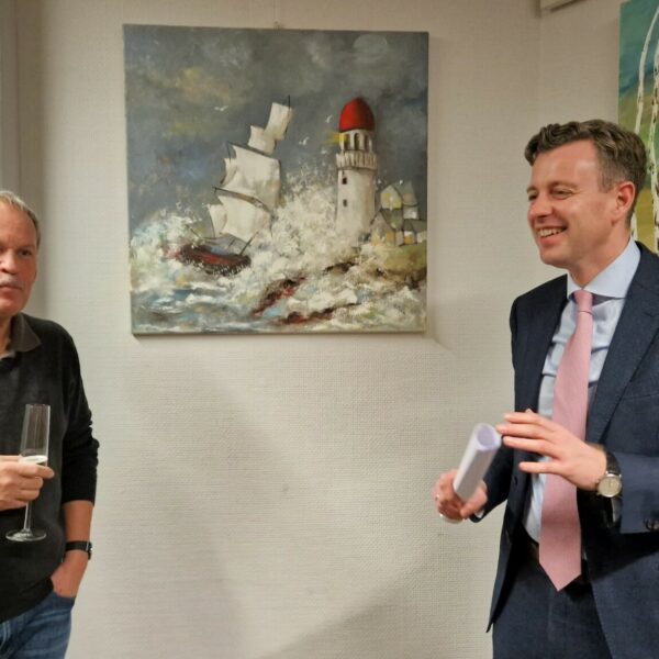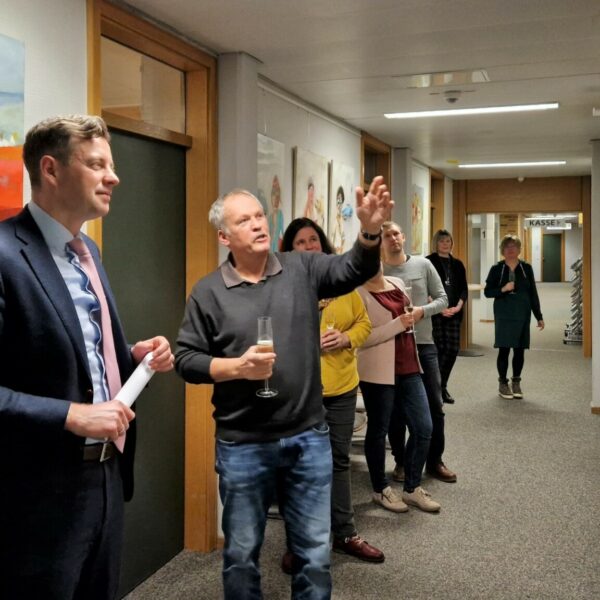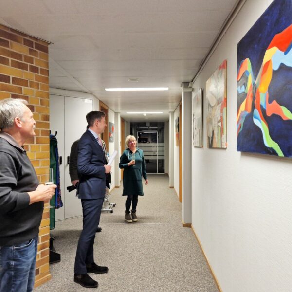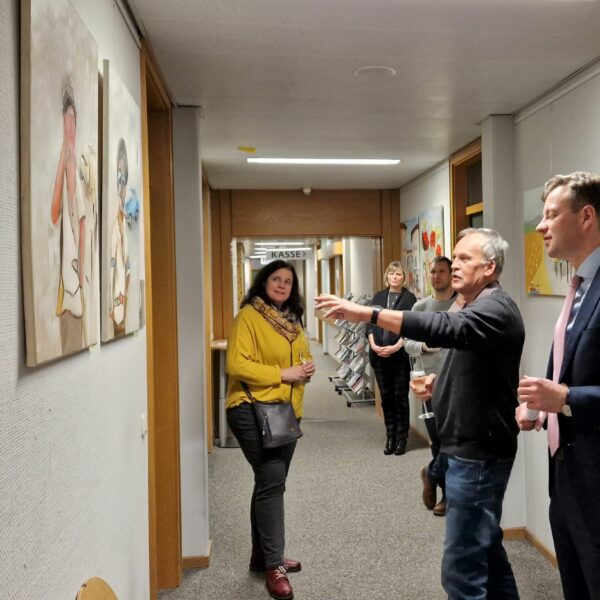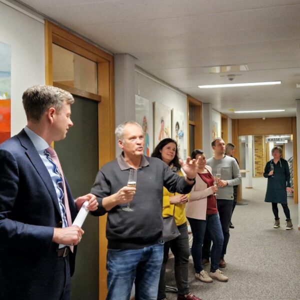 Bei der Ausstellungseröffnung hob Landrat Dr. Bär so auch die deutlich erkennbare Linie und Handschrift des Künstlers hervor. „Ein ausdrucksstarkes Werk“, so der Landrat. „Man hat das Gefühl, das Bild kommt auf einen zu und will einem etwas sagen.“ Er dankte Reinhold Plass für die lebendige Ausstellung in den Räumlichkeiten des Landratsamtes.