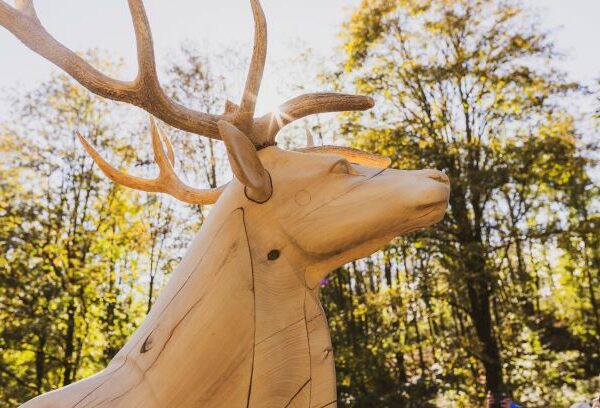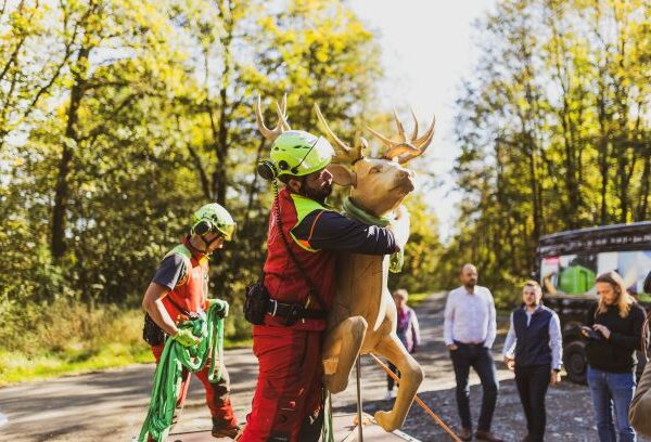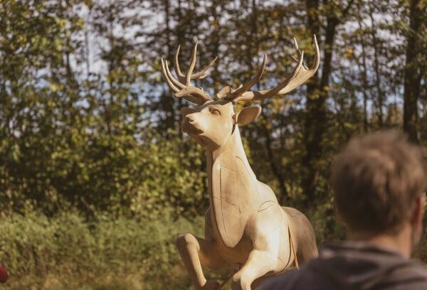 Stolze 150 Kilo wiegt der neue, aus Robinienholz gestaltete Hirsch. Majestätisch kommt er daher mit einer Länge von 2,15 Meter und einer Höhe von 2,10 Meter.