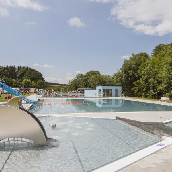 Nach rund zwei Jahren Bauzeit ist es so weit: Die Zellerinnen und Zeller können den Sommer im neu eröffneten Freibad genießen. Ein Sprungbecken, ein Schwimmerbecken mit Startblöcken, ein Nichtschwimmerbecken, eine große Doppelrutsche und ein Babybecken mit Kinderrutsche können ab sofort genutzt werden.