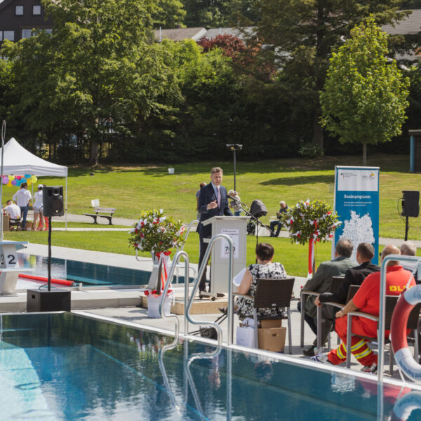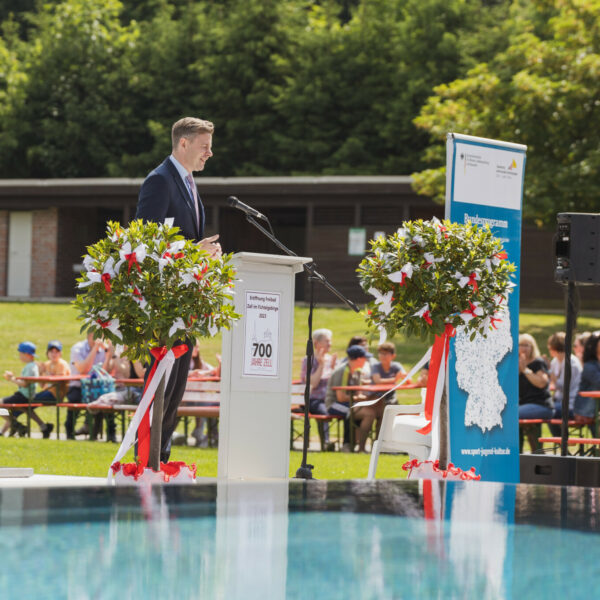 „Es freut mich, dass wir in Zell nun ein Freibad für alle Generationen haben. Das steigert nicht nur die Lebens- und Freizeitqualität vor Ort, sondern ist auch besonders wichtig, wenn man bedenkt, dass immer weniger Kinder schwimmen können und immer mehr Bäder schließen“, so Landrat Dr. Oliver Bär bei der offiziellen Eröffnung.