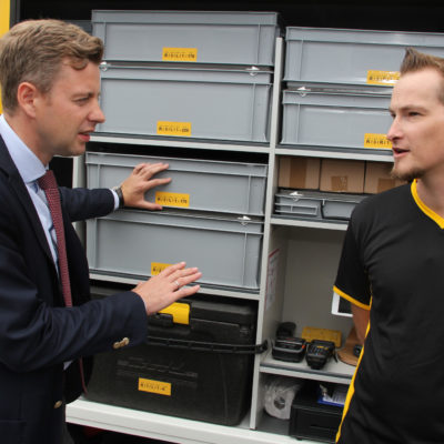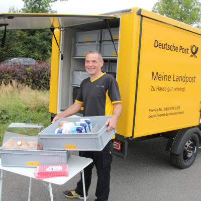 Der Landkreis Hof ist einer von zwei Standorten in der ganzen Bundesrepublik, der für das Pilotprojekt „Meine Landpost“ der Deutschen Post ausgewählt worden ist. Ab sofort ermöglicht ein fahrendes Postamt direkt vor die Haustür nicht nur den Versand von Paketen, Briefen und den Kauf von Briefmarken. Sondern das sogenannte „Meine Landpost-Service-Mobil“ ist zugleich eine Filiale um Bargeld abzuheben und ein mobiler Supermarkt, der mit 100 Artikeln des täglichen Bedarfs ausgestattet ist, wobei auch auf Anfrage weitere Artikel in das Sortiment aufgenommen werden.