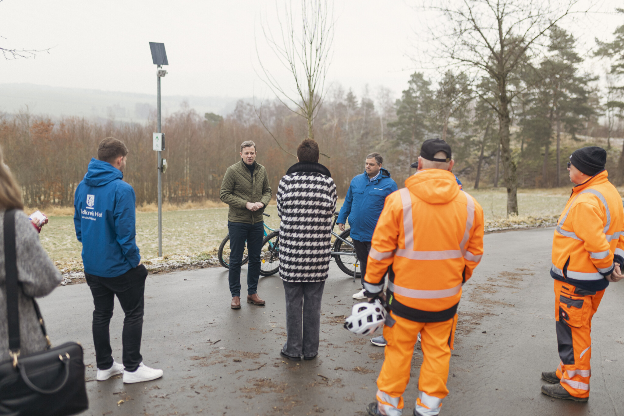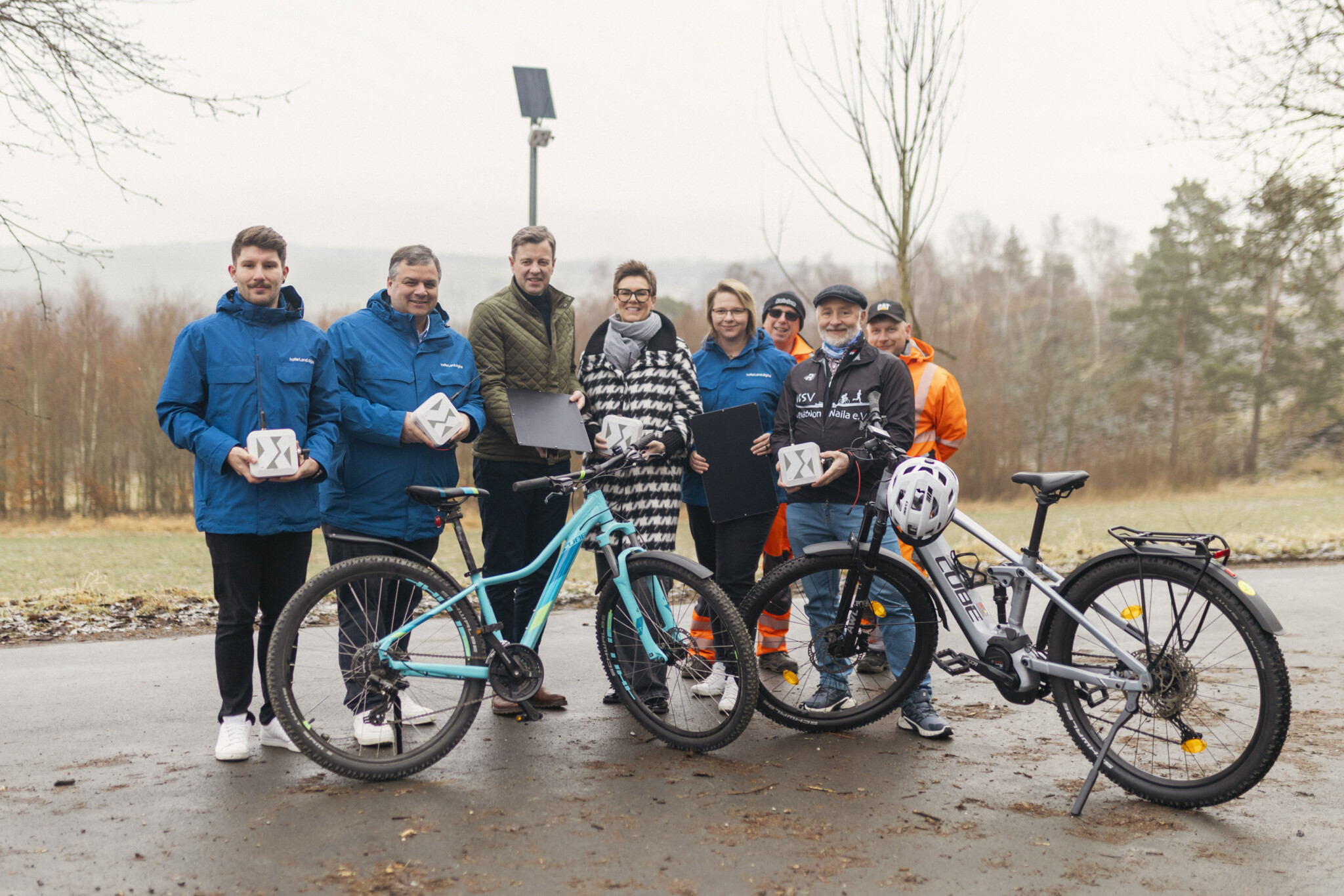 Nachdem im vergangenen Winter bereits die Taupunktsensoren erfolgreich getestet wurden, folgt nun ein weiterer Praxistest für digitale Anwendungen im Landkreis Hof. An ausgewählten Stellen im Radwegenetz werden dafür testweise Sensoren installiert. Insgesamt 21 Stück verteilt auf den gesamten Landkreis – wie jetzt auch am Saaleradweg bei Sachsenvorwerk in der Gemeinde Berg. Die Standorte befinden sich entlang wichtiger Radrouten, darunter der Saaleradweg, der Perlenradweg, der Selbitztal-Radweg und der Flüsseradweg. Die Geräte sind etwa so groß wie eine DIN-A4-Seite und werden über ein kleines Solarpanel mit Strom versorgt. Dadurch können sie unabhängig von einem vorhandenen Stromanschluss betrieben werden.