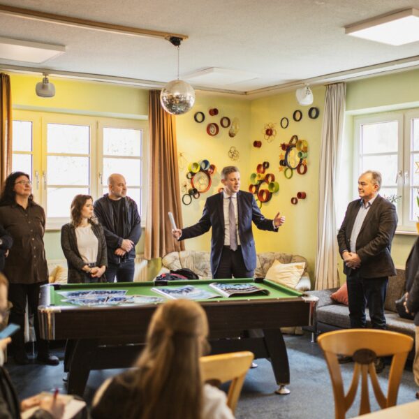 Auf dem Gruppenbild von der Pressekonferenz im Jugendtreff Oberkotzau sind von links nach rechts zu sehen: Heike Grießbach, Peter Braun (beide Jugendtreff Oberkotzau), Alexander Prechtl (Eventmanager Stadt Rehau), Lisa Popp (Jugendzentrum Rehau), Petra Schultz (Kommunale Jugendarbeit Landkreis Hof), Nina Süß (Jugendzentrum Münchberg), Sebastian Schönberger (Jugendtreff Helmbrechts), Landrat Dr. Oliver Bär, Coach Harry Tröger, 2. Bürgermeister Max Petzold (Münchberg), Bürgermeister Stefan Breuer (Oberkotzau), Gerhard Zeitler (Leiter Jugendamt Landkreis Hof), Bürgermeister Stefan Pöhlmann (Helmbrechts).