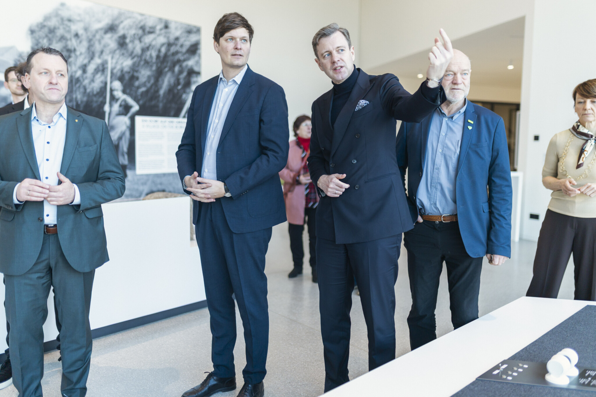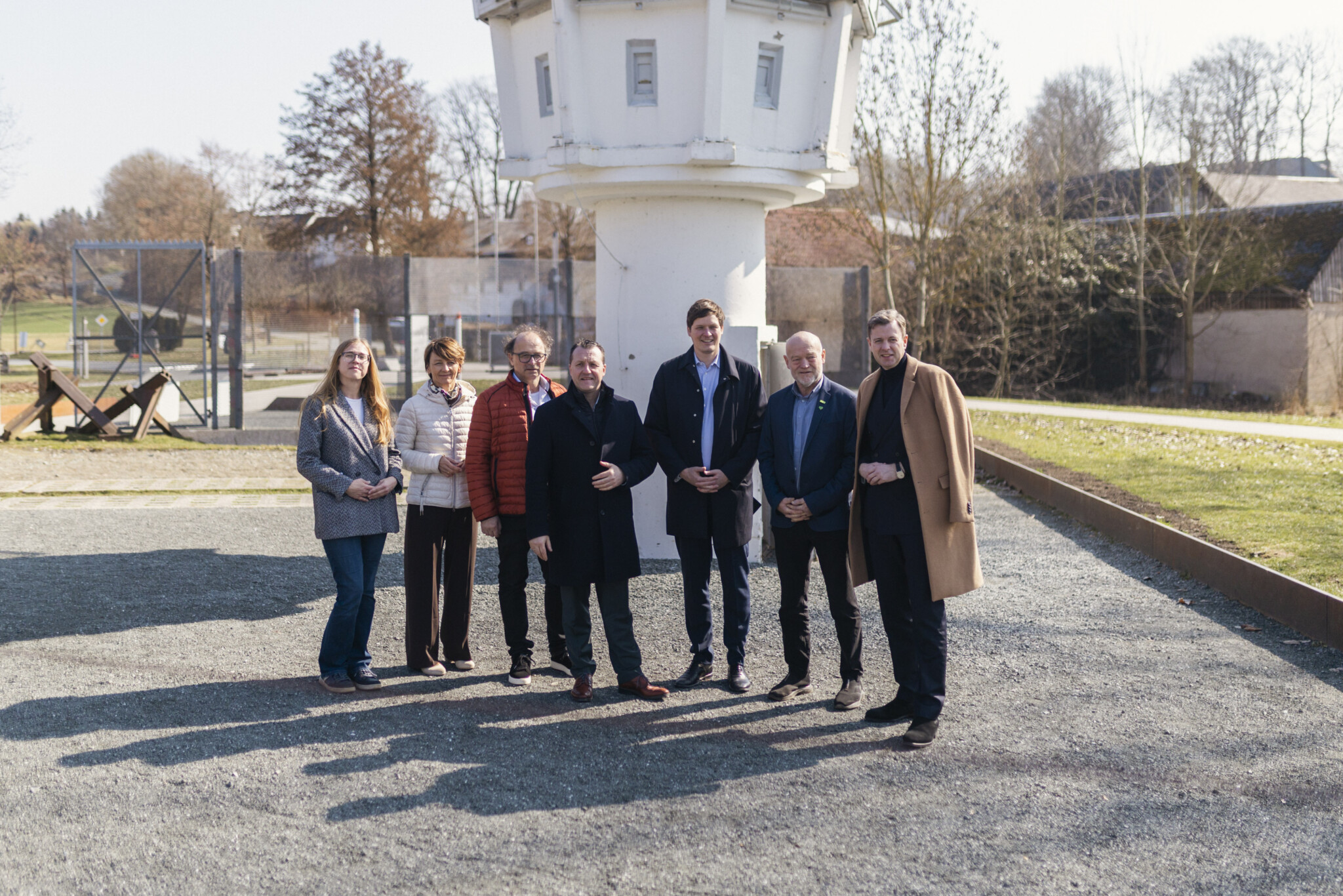 Susan Burger (Museumspädagogin Deutsch-Deutsches Museum Mödlareuth), Christine Franz (Geschäftsführerin Zweckverband Deutsch-Deutsches Museum Mödlareuth), Museumsleiter Robert Lebegern, Jörg Schmidt (Mitglied des sächsischen Landtags), Sachsens Kultusminister Conrad Clemens, Andreas Heinz (Mitglied des sächsischen Landtags), Landrat Dr. Oliver Bär