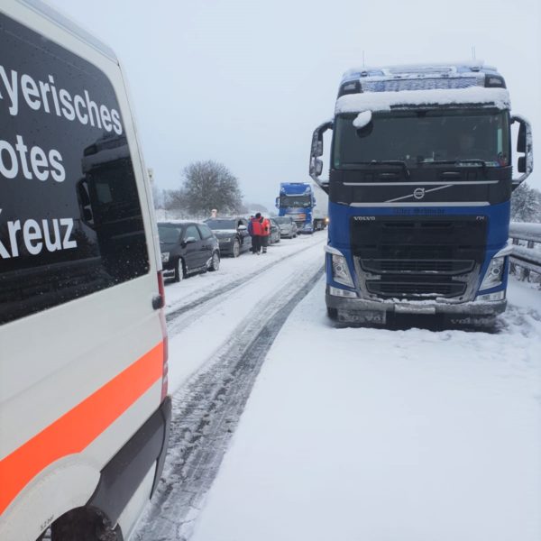 Insgesamt waren in der vergangenen Nacht über 100 Einsatzkräfte von BRK, THW und Polizei im Einsatz, versorgten die Autofahrer mit Decken und Heißgetränken oder kümmerten sich um liegengebliebene Fahrzeuge sowie ausgehenden Treibstoff.