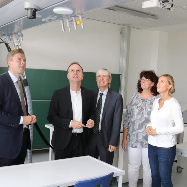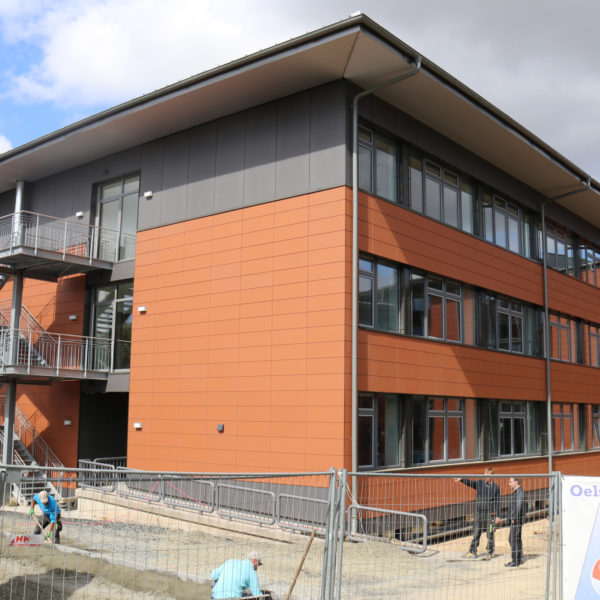 Landrat Dr. Oliver Bär: „Die Qualität des Gebäudes und der Möglichkeiten ist herausragend. Wir wollen die Schulen im Landkreis Hof bestmöglich aufstellen. Der Stand im Landkreis Hof ist schon sehr sehr gut, wir wollen aber keinesfalls stehen bleiben.“ Saniert beziehungsweise nahezu neugebaut hat das alte Realschulgebäude das Architekturbüro Hermann Beyer aus Döhlau, das bereits für den restlichen Umbau des Schulzentrums Rehau verantwortlich war. Mit dem einheitlichen Konzept der Terrakotta-Bauweise ist das gesamte Schulzentrum aus Grundschule, Mittelschule und Realschule aus einem Guss.