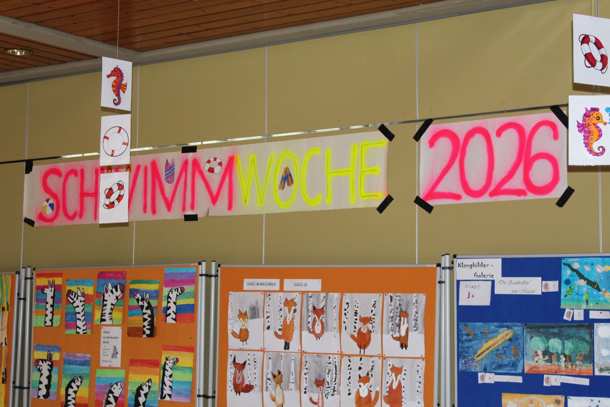 Wie in jedem Jahr fand die Vergabe der Abzeichen am Freitag nach der letzten Schwimmstunde im Rahmen einer musikalisch eingebetteten Veranstaltung statt. Landrat Dr. Oliver Bär unterstrich die Bedeutung des Projektes. Fast 90 Prozent aller Kinder der Jean-Paul-Grundschule können aktuell schwimmen – während der Trend deutschlandweit immer weiter sinkt.