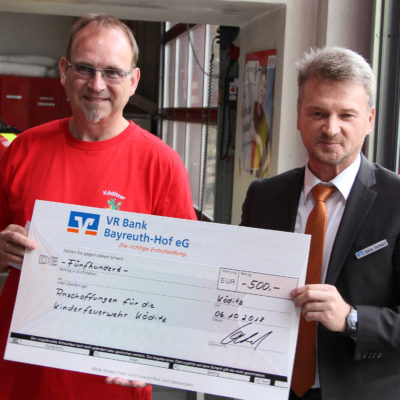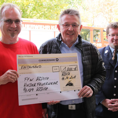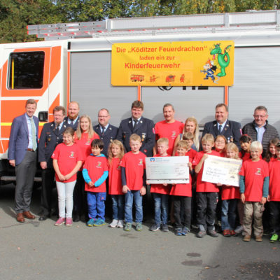 Finanziell unterstützt wird der Start der Köditzer Kinderfeuerwehr von der R&K Hochfranken Holz GmbH aus Köditz mit 1000 Euro und T-Shirts im Wert von 500 Euro, die VR-Bank ist mit 500 Euro dabei. Im Landkreis Hof gibt es mittlerweile fünf weitere Kinderfeuerwehren: in Helmbrechts, Bad Steben, Carlsgrün, Gösmes und Zell.