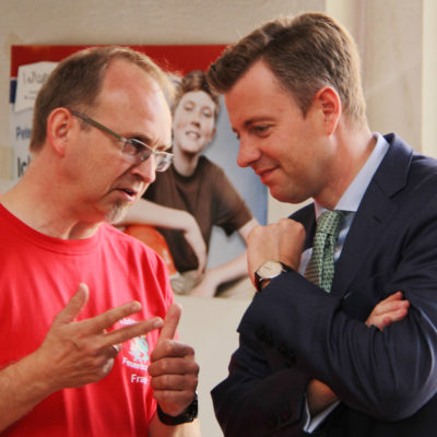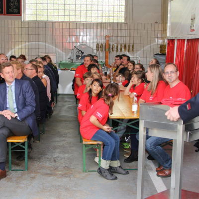 Brandschutzerzieher Frank Straub - hier im Gespräch mit Landrat Dr. Oliver Bär - ist der Leiter der Köditzer Feuerdrachen.